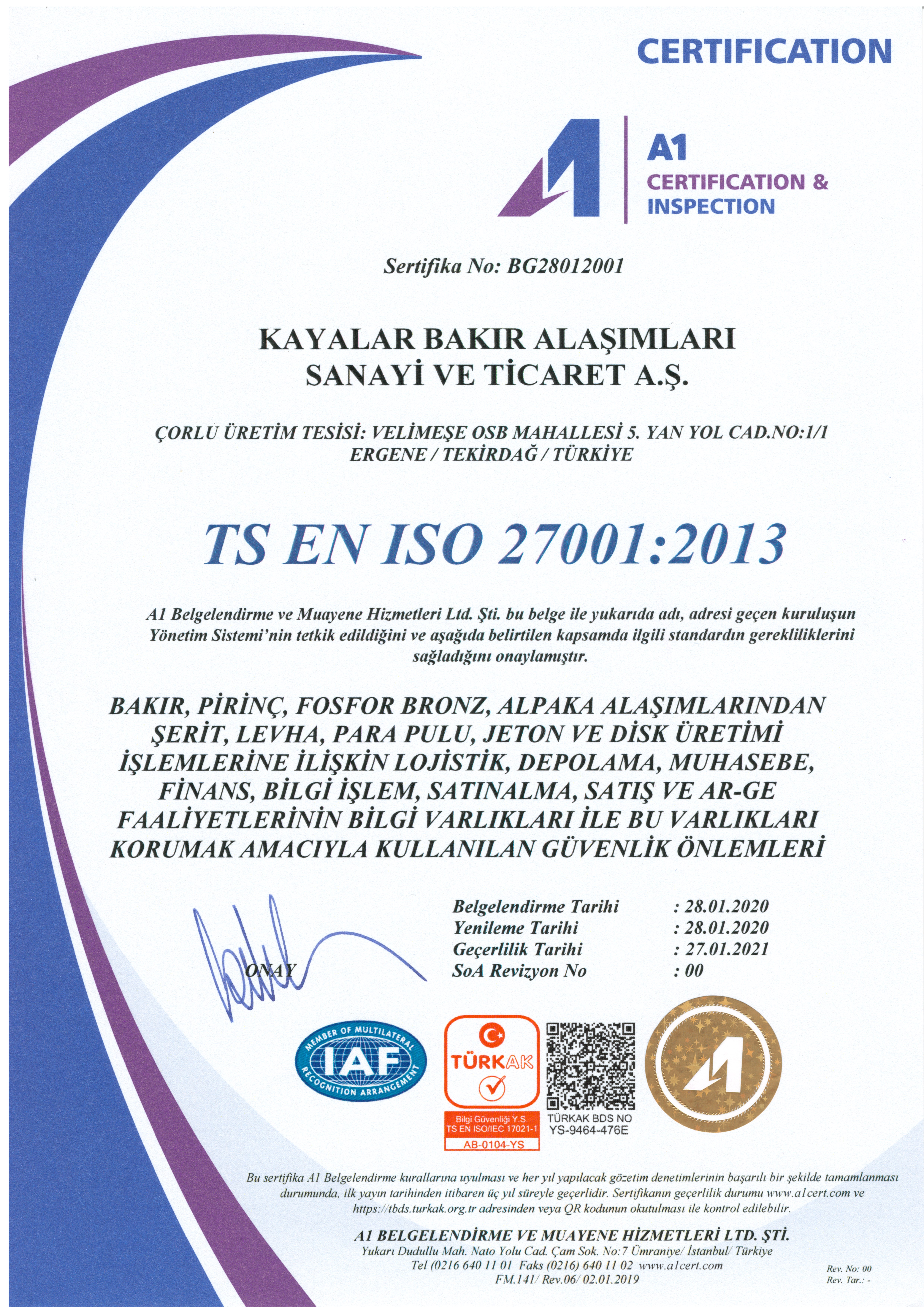 Kayalar Bakır Alaşımları San. ve Tic. A.Ş. was founded in 1958. Since the date of its foundation, the company has acquired a first – class name for its quality product.